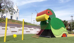 Nosso grande e colorido papagaio voou e pousou na Praça Sampaio Correa, em Saquarema, levando felicidade para a criançada que mora no local.